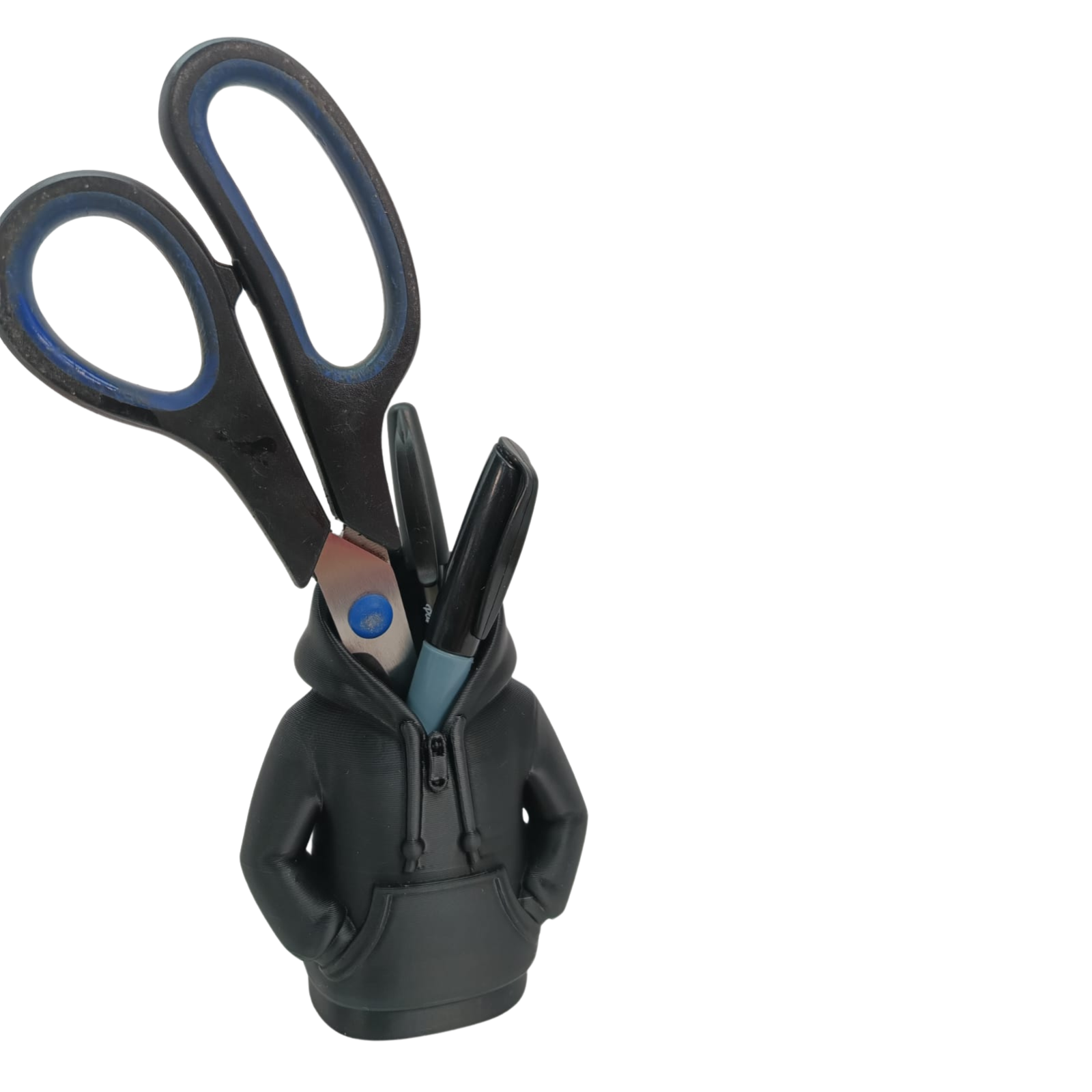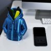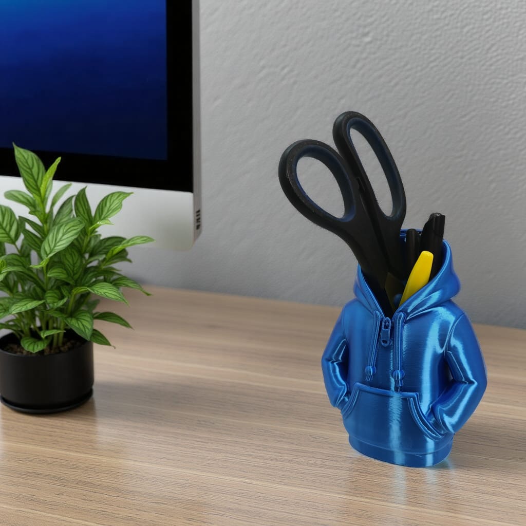 No es solo un porta-lapiceros; es el nuevo integrante de tu equipo de trabajo. Con su diseño de sudadera con capucha, este organizador parece estar «vigilando» tus herramientas mientras les da un refugio lleno de estilo y personalidad.